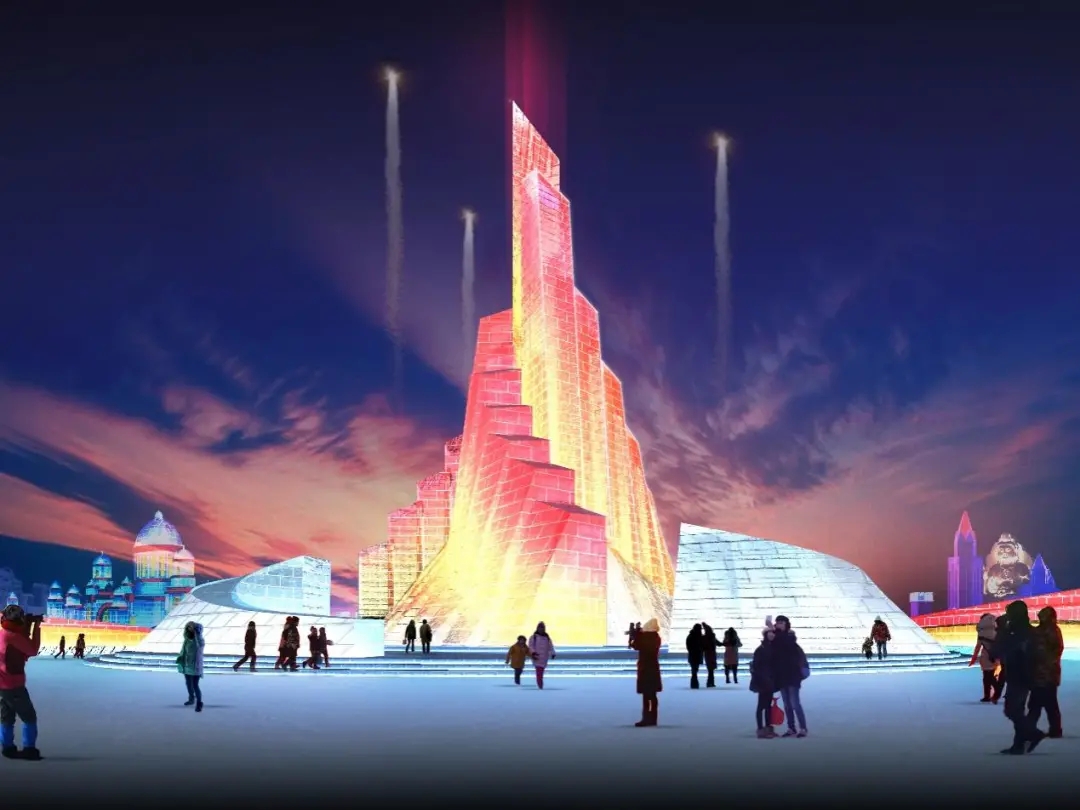 據(jù)介紹,結(jié)合場(chǎng)地及冬奧文化,今冬的哈爾濱冰雪大世界園區(qū)將分為冬奧之光區(qū)、圣火之巔區(qū)、閃耀舞臺(tái)區(qū)、激情相約區(qū)、歡樂(lè)相聚區(qū)和雪山飛揚(yáng)區(qū)六大區(qū),園區(qū)整體藝術(shù)觀賞性更佳,視覺(jué)震撼性更強(qiáng)。從其設(shè)計(jì)圖看,主塔形似冬奧圣火,巍峨聳立、神圣莊嚴(yán)。